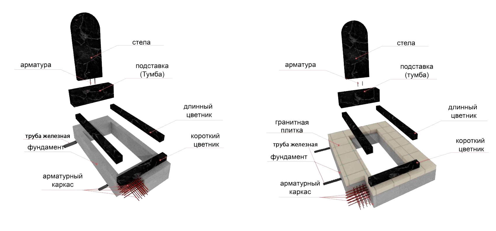Бетонное основание (армированное). Верх и торец отделаны морозостойким керамогранитом.